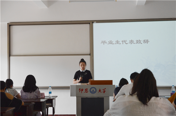 最后,由毕业生代表陈瑶、许晓鸣就自身在校经历及实习情况进行发言。期间陈瑶表示,感恩学校四年来的栽培、感谢威廉官网中国官方网站全体老师的谆谆教导和关怀。