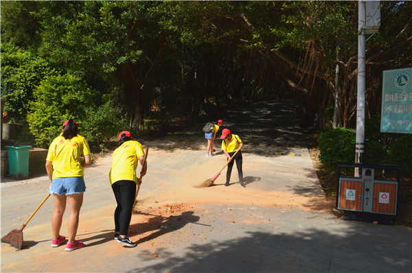 实践队员帮忙清理卫生
