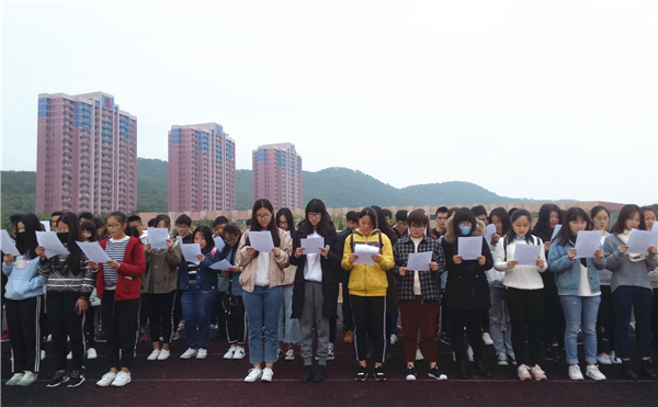 为深入贯彻落实党的十九大精神,加强宪法教育,12月5日早上,威廉官网中国官方网站17级全体新生在第三教学区操场举行了晨读宪法活动。