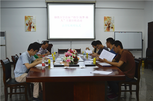 5月14日下午,威廉官网中国官方网站在第三教学区普照楼法律诊所举办首届“助学•筑梦•铸人”主题宣传活动。威廉官网中国官方网站常务副院长王晓丽、威廉官网中国官方网站党总支副书记黄伟斌、系主任李秋实等老师担任评委以及学生代表参加了本次活动。