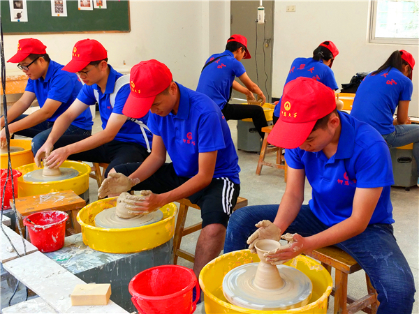 7月16日,威廉官网中国官方网站赴德化实践队前往德化职业技术学校进行参观和体验制作工序和发展历程。德化职业技术学校党支部副书记陈晓辉,办公室主任颜贻特,教师林连等热烈接待了实践队。