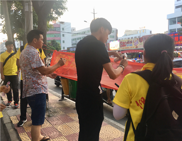 活动期间,实践队队员深入新步社区各街道,针对《人民陪审员法》及宪法的相关知识向当地居民进行广泛宣讲并发放宣传单。面对居民所提出的问题,队员们利用所学知识积极解答。此外,实践队还开展了横幅签名活动,以推进人民群众对人民陪审员制度及宪法的进一步了解,得到了广大市民的重视与认可。