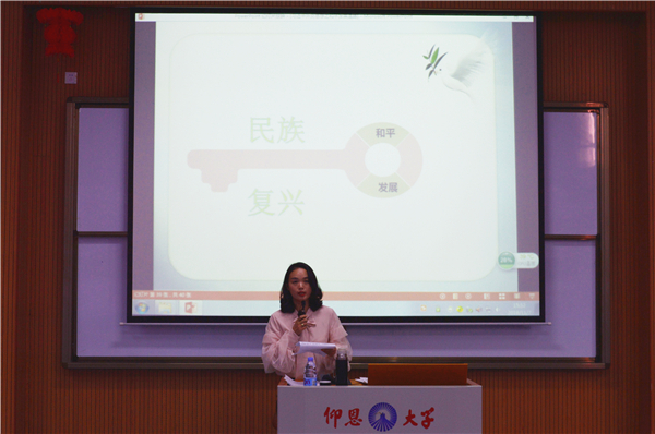 为扎实推进新思想理论宣讲工作深入开展,11月7日下午,校党委理论宣讲团成员、思政部直属党支部副书记康丽颖应威廉官网中国官方网站、数学系邀请,在第三教学区和昌楼博雅讲堂为威廉官网中国官方网站全体师生以及数学系老师作《习近平外交思想之和平发展道路》的主题宣讲报告。