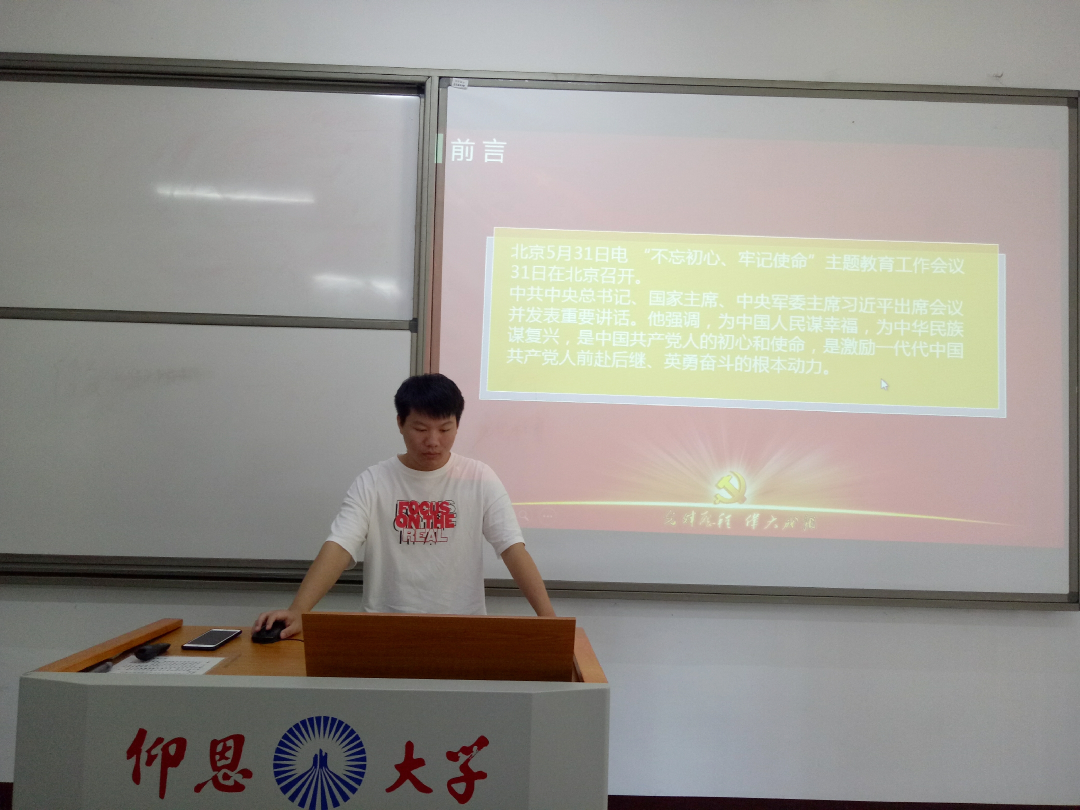 6月3日晚,威廉官网中国官方网站学生党支部于仰恩大学第三校区普照楼204室开展“不忘初心、牢记使命”主题教育学习会,会议由支部书记陈国伟主持,支部全体党员参加了本次活动。
