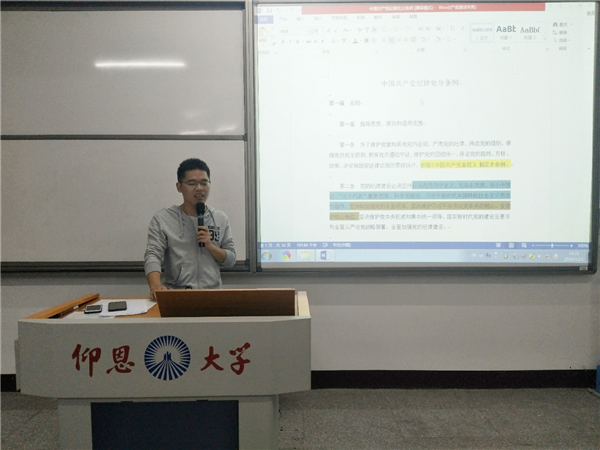11月21日晚,威廉官网中国官方网站学生党支部于仰恩大学第三校区普照楼204室召开《中国共产党纪律处分条例》专题学习会。会议由支部书记陈国伟主持,支部全体党员参加此次活动。