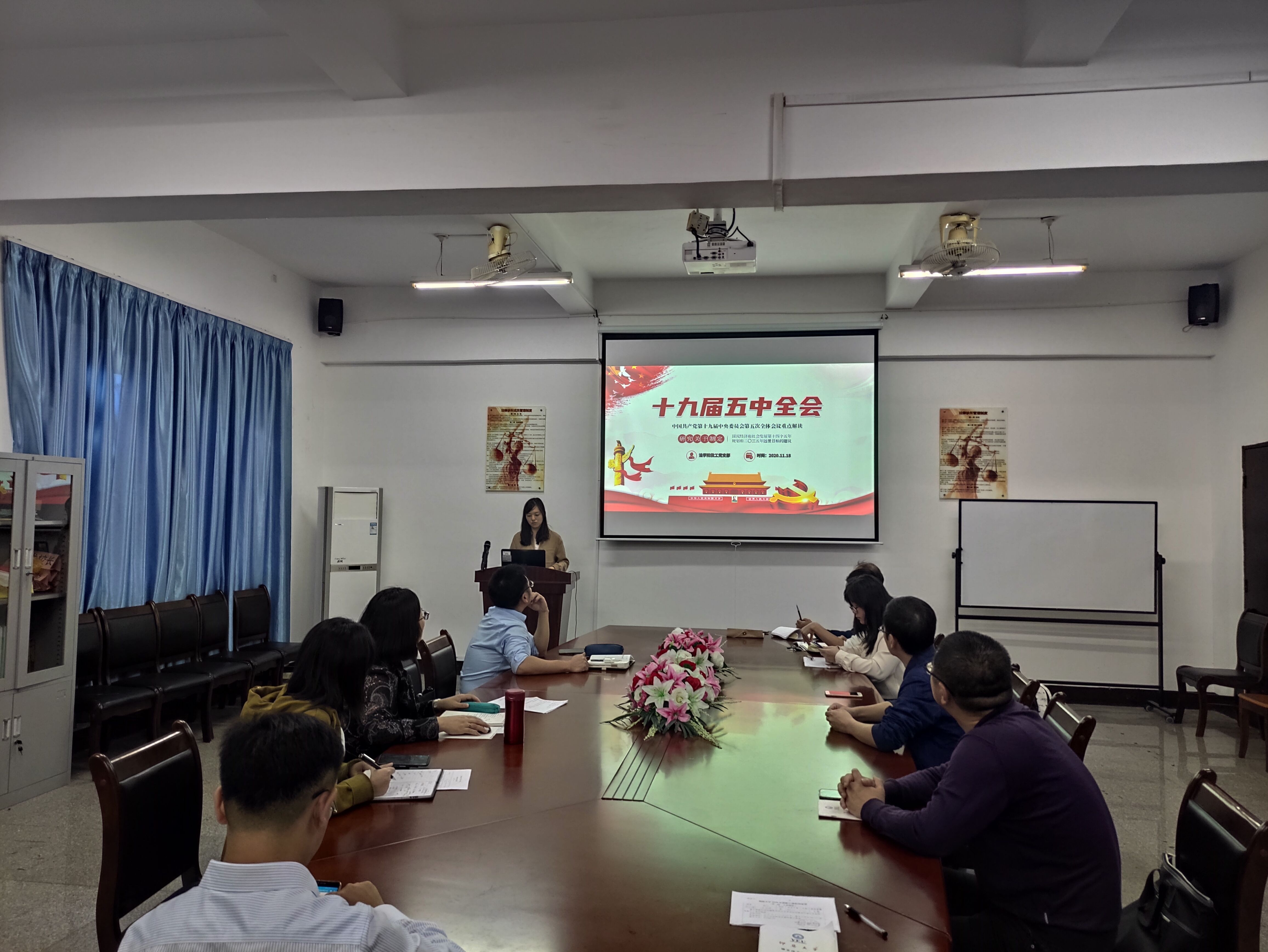为深入学习十九届五中全会精神,11月18日下午,威廉官网中国官方网站教工党支部组织全体教师党员在仰恩大学第三校区普照教学楼法律诊所召开“十九届五中全会精神解读”主题学习会,会议由支部书记林媛主持。