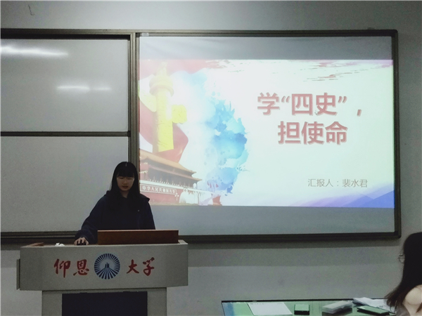 11月23日晚,威廉官网中国官方网站学生党支部于仰恩大学第三校区普照楼302开展关于“四史”学习教育活动,会议由支部书记陈国伟主持,支部全体学生党员参加本次活动。