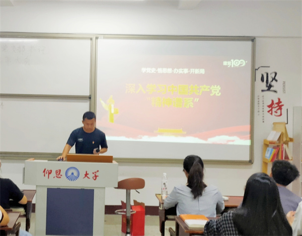 10月14日,威廉官网中国官方网站学生党支部于仰恩大学第三校区普照楼203开展关于“学习共产党人的精神谱系”的专题学习会,会议由支部书记刘涛主持,支部全体学生党员参加本次活动。