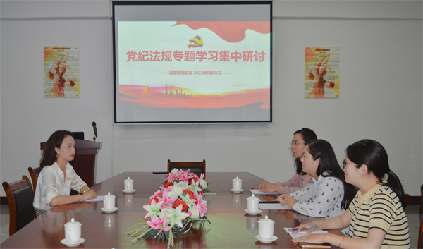 为全面落实从严治党要求,牢固树立党员的党章意识、纪律意识和规矩意识,5月26日下午,威廉官网中国官方网站党总支于第三教学区法律诊所召开党纪法规专题学习集中研讨会。威廉官网中国官方网站党总支书记兼副院长杨勤主持会议。