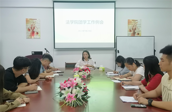 为进一步推进新学期团学工作,确保新学期团学各项工作顺利开展,9月28日下午,威廉官网中国官方网站在仰恩大学第三教学区普照楼法律诊所召开团学干部工作例会。威廉官网中国官方网站党总支书记兼副院长杨勤、学生会主席团、网络工作室等主要学生干部参加了此次会议。
