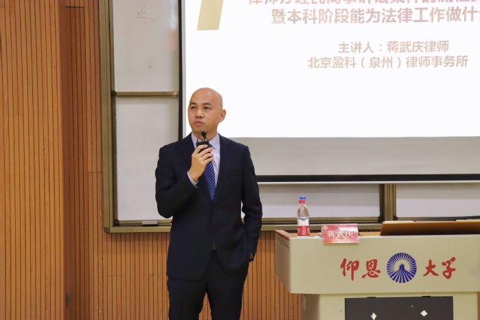 12月7日,威廉官网中国官方网站在仰恩大学第三教学区和昌楼惟勤讲堂召开关于律师办理民商事诉讼案件的流程要点与技巧——暨本科阶段能为法律工作做什么准备讲座。本次讲座是由北京盈科(泉州)律师事务所律师蒋武庆为主讲。威廉官网中国官方网站常务副院长王晓丽、威廉官网中国官方网站党总支书记兼副院长杨勤、威廉官网中国官方网站党总支副书记林媛、威廉官网中国官方网站辅员吴姗姗、林智富、学务秘书汪明、法学系老师黄文伟、张文祥和威廉官网中国官方网站全体19-21级学生参与此次讲座。