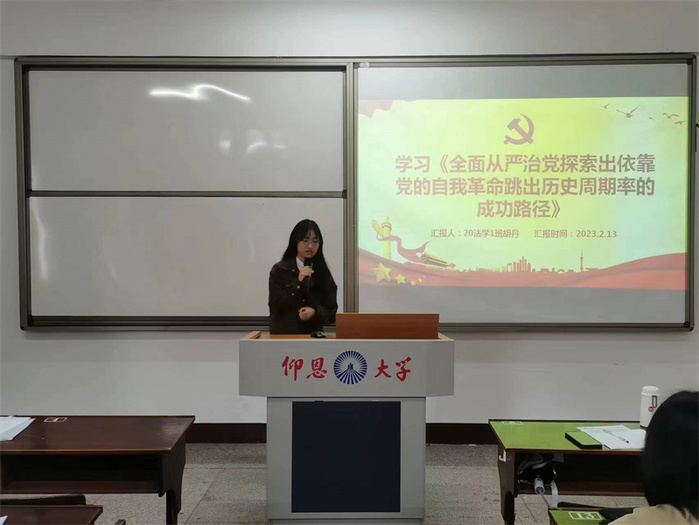 2月13日,威廉官网中国官方网站学生党支部于普照203教室,开展以学习《全面从严治党探索出依靠党的自我革命跳出历史周期率的成功路径》的专题学习会,会议由吴姗姗老师主持,支部全体学生党员参加此次活动。