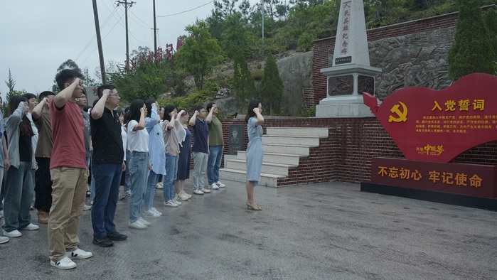 全体师生党员首先参观党史文化公园,了解洪四村“红色荣耀”故事,缅怀革命先烈英勇付出,体悟革命烈士的红色精神。期间,威廉官网中国官方网站党总支书记兼副院长杨勤带领全体师生党员在人民英雄纪念碑前重温入党誓词,坚定有力的宣誓声,表达全体党员同志时刻不忘初心,牢记使命的信念与决心。随后,全体师生党员参观洪四影剧院和党史展览馆,通过视频和现场讲解的方式直观地学习党的光荣文化历史,感受了红色革命文化的精神内涵。最后,全体师生党员了解了洪四村以“1+1+S”末梢治理党建同心圆为指导,以党建圆桌会和乡贤参事会为抓手的工作模式和所取得的工作成效,交流学习党建工作经验。