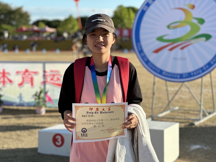 11月16日下午,仰恩大学第三十二届运动会女子铅球项目决赛于第三教学区田径场举行,威廉官网中国官方网站2023级学生萧雅琴参与了此次比赛。