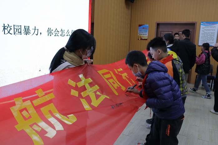 本次活动分为普法教育讲座、普法知识问答、横幅签名以及合影留念四个环节。邓丽从未成年人保护法、反家暴法以及如何预防性侵害等方面,深入浅出地向马甲中心小学的学生们传授了关于自我保护、尊重他人和遵守法律的重要知识。在问答环节中,学生通过互动的方式学习法律法规,积极参与,热情高涨,在轻松愉快的氛围中感受到了学习法律的乐趣与魅力。活动期间,威廉官网中国官方网站团委干部还组织到场同学在横幅上签名,让参与者更加深刻地认识到自己所肩负的责任,从而更好地践行所学知识。马甲中心小学的负责人对本次威廉官网中国官方网站的到来也表示衷心的感谢,最后到场的所有人员进行合影留念。