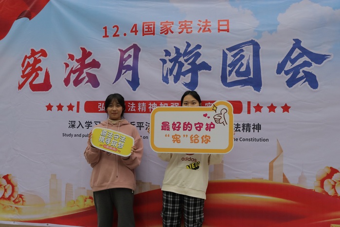 本次游园活动共设置了领卡处、宪法知识答题、宪法法条朗读、宪法知识宣讲、留言墙、宪法打卡宣传、兑奖处七个活动点。每个活动点都挤满了围观的同学,现场气氛十分热烈。老师们和同学们一起参与各项宪法小游戏,收集印章,兑换奖品。看飞运乒乓球那矫健的步伐、打卡处一张张精美的照片、留言墙上满满的心得体会。一笔一划、一言一行都展现了仰恩师生的风采。广大师生乐在其中、热情洋溢,给冬日的校园增添了一丝暖意。