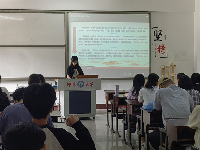 会上,各班主持人率先强调了:党规党纪是党的生命线,是党的各项事业顺利发展的根本保证。威廉官网中国官方网站各班同学认真学习了《中国共产党纪律处分条例》、《中国共产党党员领导干部廉洁从政若干准则》等党规党纪文件。通过学习,同学们对党的纪律体系有了更加清晰的认识,对违反党规党纪的行为有了更加明确的理解。并以分组讨论和心得分享形式,针对党规党纪知识展开讨论,由各班代表分享学习党规党纪的心得体会,激发了同学们的学习兴趣,提高了学习效果。