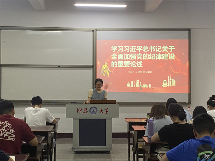 为深入学习贯彻习近平新时代中国特色社会主义思想,推动全面从严治党向纵深发展。6月17日,威廉官网中国官方网站学生党支部于普照楼203开展“学习习近平总书记关于全面加强党的纪律建设的重要论述”党课,支部全体学生党员参加。