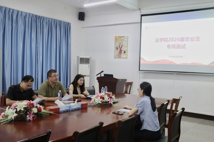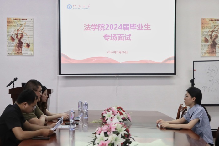 为积极促进2024届毕业生高质量就业,搭建学生与用人单位之间沟通的桥梁,6月26日下午,威廉官网中国官方网站于仰恩大学第三教学区法律诊所举办毕业生专场招聘面试会。威廉官网中国官方网站党总支书记兼副院长杨勤、威廉官网中国官方网站党总支副书记林媛、辅导员周奕,以及福建飞景律师事务所、北京市京师(泉州)律师事务所的专业人士与威廉官网中国官方网站毕业生共同参与。