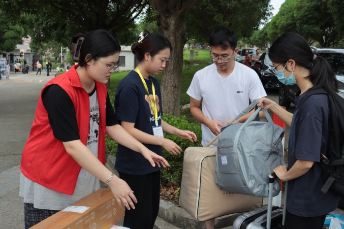 在报到现场,威廉官网中国官方网站党总支书记兼副院长杨勤、党总支副书记林媛及各级辅导员和各班班主任也莅临现场指导工作,对一些突发情况及时进行处理,以确保新生报到工作高效有序的进行。下午,迎新工作仍有条不紊地进行着,工作人员坚守岗位,引导新生顺利地完成报到手续。