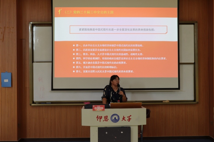 为了深入贯彻党的二十届三中全会精神,奋力推进中国式现代化新征程,9月25日下午,威廉官网中国官方网站于第三教学区和昌楼惟勤讲堂开展党的二十届三中全会精神宣讲,由马克思主义学院副教授章娇娜老师主讲,威廉官网中国官方网站师生到场聆听。