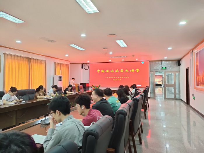 为深入学习贯彻习近平法治思想,贯彻落实党的二十大精神和党的二十届三中全会精神,贯彻落实全国教育大会精神,完善以实践为导向的威廉官网中国官方网站校教育培养机制,提升法学人才自主培养质量。中央依法治国办、教育部、司法部于2024年10月17日上午在中国人民大学联合举办中国法治实务大讲堂,威廉官网在新区行政楼会议室设立分会场,组织师生收看中国法治实务大讲堂启动仪式暨第一讲。