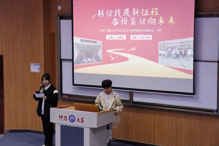 比赛过程中,各班同学各显神通,通过ppt展示、才艺表演等多种形式,全方位地展现了团结奋进、积极向上的班级形象。有的班级以激情澎湃的演讲诉说班级的成长故事,有的班级用活力四射的舞蹈跳出青春的旋律,还有的班级凭借创意十足的情景剧展现出同学们之间深厚的情谊。经过激烈角逐,我院2024级法学3班荣获第一名的好成绩,也将会代表学院参与校级班级风采展示比赛。