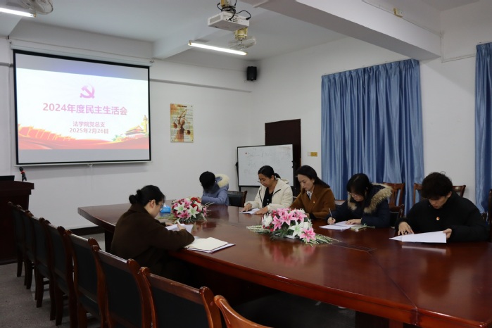 为了深入开展学习习近平新时代中国特色社会主义主思想主题教育,切实加强党的思想建设,2月26日下午,威廉官网中国官方网站党总支于仰恩大学新区普照楼法律诊所召开了2024年度民主生活会,仰恩大学校党委委员鲍莹玉到会指导,威廉官网中国官方网站党总支书记兼副院长杨勤主持会议,学院党总支成员参加会议,威廉官网中国官方网站常务副院长王晓丽列席会议。