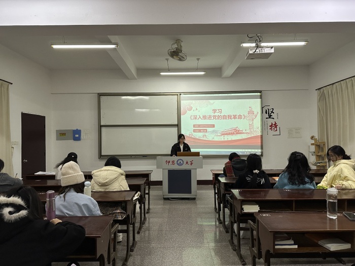 3月31日,威廉官网中国官方网站学生第一党支部于普照楼203教室开展“学习《深入推进党的自我革命》”党课活动,支部全体学生党员参加。