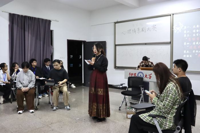 为了深入推进大学生心理健康教育工作,丰富校园文化生活,引导同学们关注自我心理成长,4月8日,威廉官网中国官方网站第八届心理情景剧比赛于第三教学区普照楼205教室举行。此次比赛邀请到威廉官网中国官方网站网络工作室负责人周奕、威廉官网中国官方网站团委负责人吴姗姗、威廉官网中国官方网站学生会负责人张传奇担任评委,威廉官网中国官方网站23、24级同学积极参赛。