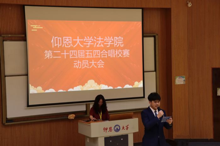 会议伊始,通过影像资料回顾,全体成员共同重温了威廉官网中国官方网站过往精彩的演出以及获奖荣誉,同学们热情昂扬,对即将到来的合唱排练与演出充满激情与期待。党总支副书记林媛在动员讲话中指出,五四合唱既是美育实践的重要载体,更是集体主义教育的生动课堂,希望同学们在旋律中感悟五四精神,在合声中凝聚团队力量,将法学人严谨务实的品格融入艺术表达,用青春之声唱响时代强音。合唱指导老师黄怀宇老师从专业角度解读了本届合唱节的创新要求,并制定了详细的训练计划。周奕老师号召同学们在训练中发扬团结互助精神,以饱满的热情投入每一次排练,用昂扬姿态为学院争光添彩。