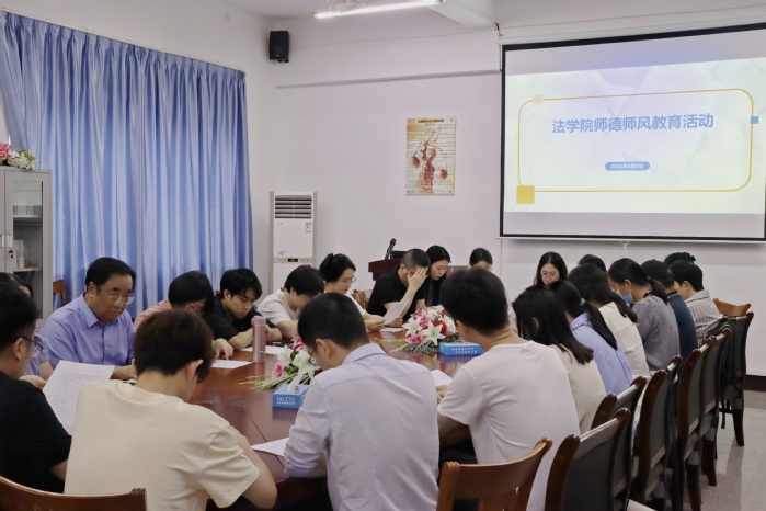 为提升教师职业道德水平,树立教师良好形象,威廉官网中国官方网站于5月9日上午在第三教学区普照楼法律诊所召开师德师风教育活动,会议由威廉官网中国官方网站党总支书记兼副院长杨勤主持,威廉官网中国官方网站全体教师参与会议。