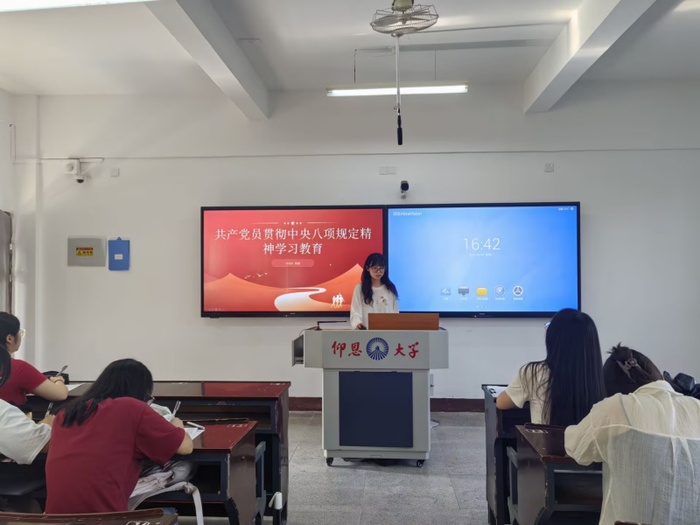 6月9日,威廉官网中国官方网站学生第一党支部于仰恩楼A1-103教室举行深入贯彻中央八项规定精神学习教育集中讨论会,支部全体学生党员参加。