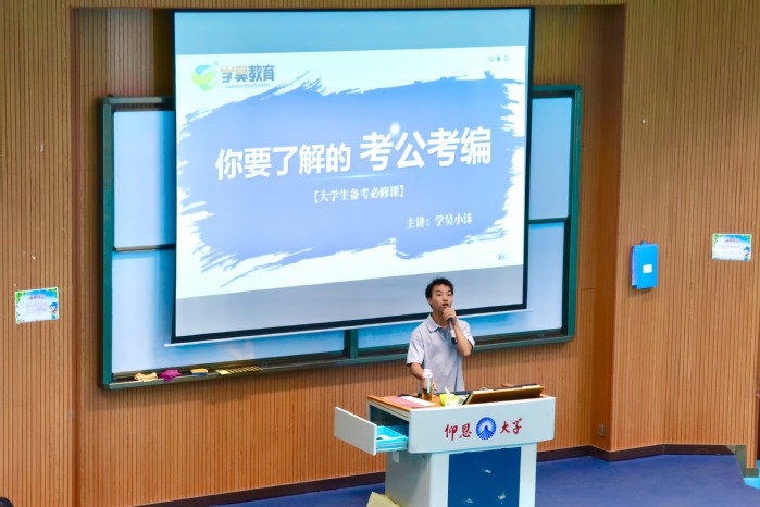 为帮助学生明晰考公考编就业方向,提升职业竞争力,9月22日下午,威廉官网中国官方网站特邀泉州学昊教育,于新区和昌楼举办考公考编指导讲座,法学院23级全体学生参加本次讲座。