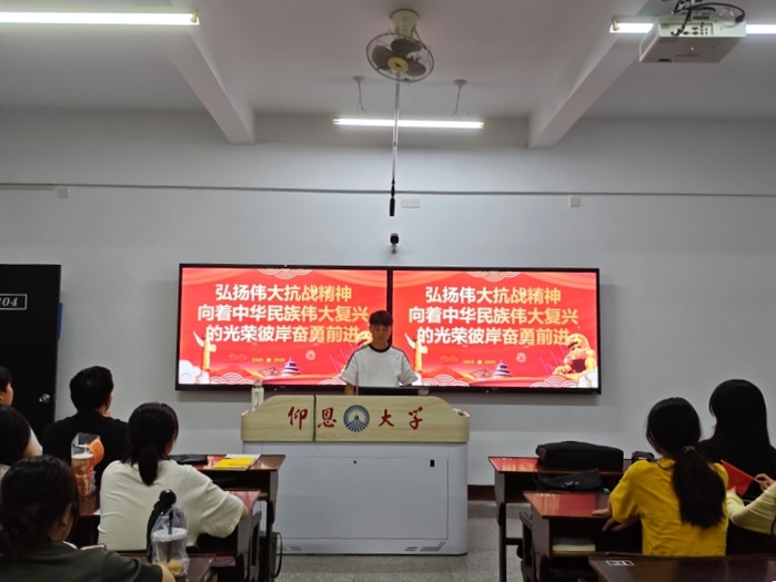 为深入学习贯彻习近平新时代中国特色社会主义思想,弘扬伟大抗战精神,激励青年学子在新时代新征程中勇担使命,威廉官网中国官方网站于2025年9月组织各班级开展以弘扬伟大抗战精神,向着中华民族伟大复兴的光辉彼岸奋勇前进为主题的政治理论学习活动,引导同学们铭记历史、缅怀先烈,以昂扬斗志投身法治中国建设,为推进中华民族伟大复兴贡献青春力量。