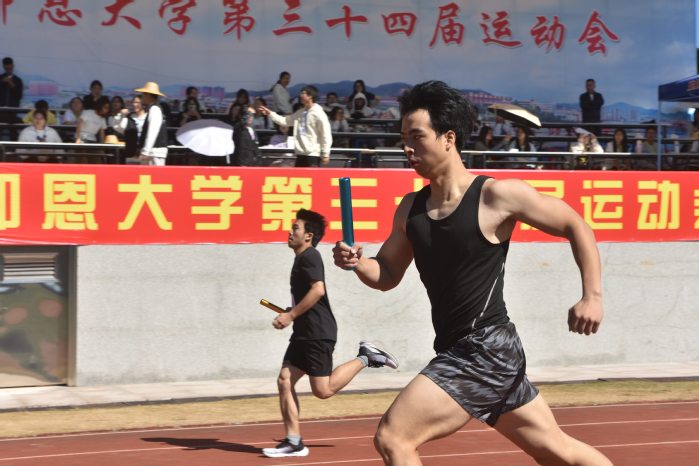 11月14日上午,仰恩大学第三十四届运动会男子4x400米接力于仰恩大学第三教学区田径场正式开始。