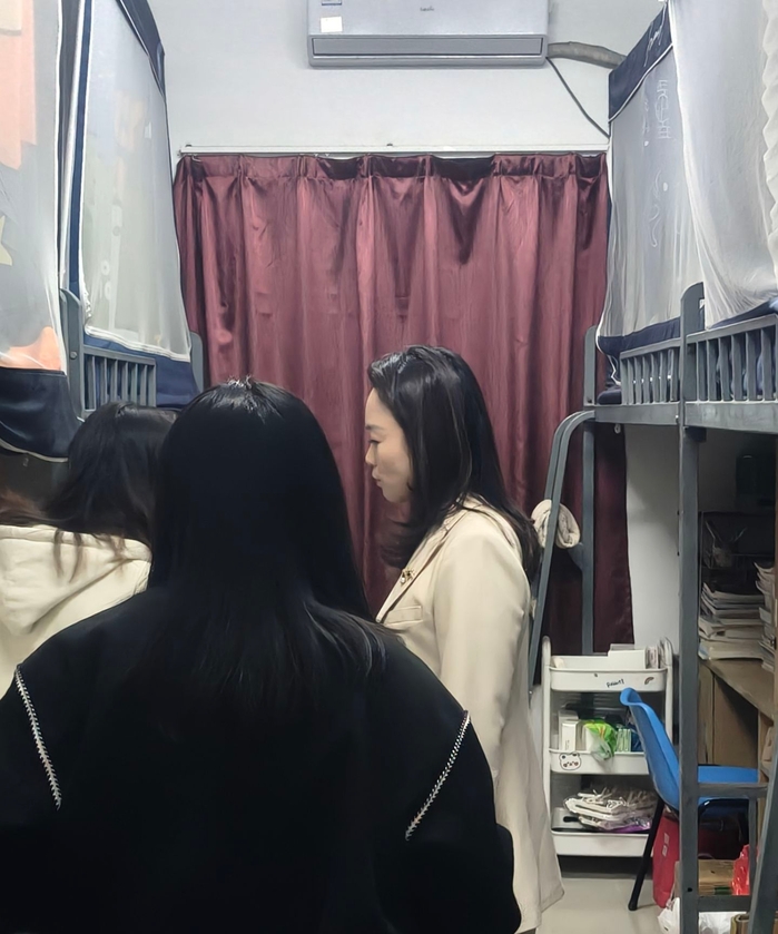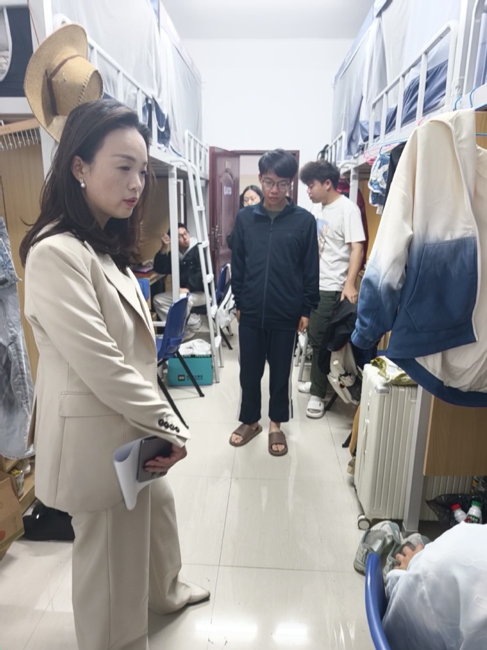 走访过程中,杨勤书记仔细查看了各宿舍的环境、设施配置及卫生状况,并与同学们亲切交流,详细了解同学们的学习状态、课程进度等,鼓励同学们珍惜校园时光,主动了解行业前景,提前做好规划。同时也关注同学们的课余生活,认真倾听大家对校园生活的感受,还叮嘱同学们在专注学业的同时,要注重身心健康,保持规律作息。交流过程中,同学们也纷纷敞开心扉分享起自己在学习中的困惑与收获,现场气氛热烈而融洽。最后,杨勤书记鼓励大家平日里要相互包容、互帮互助,让宿舍成为像家一样的温暖港湾。