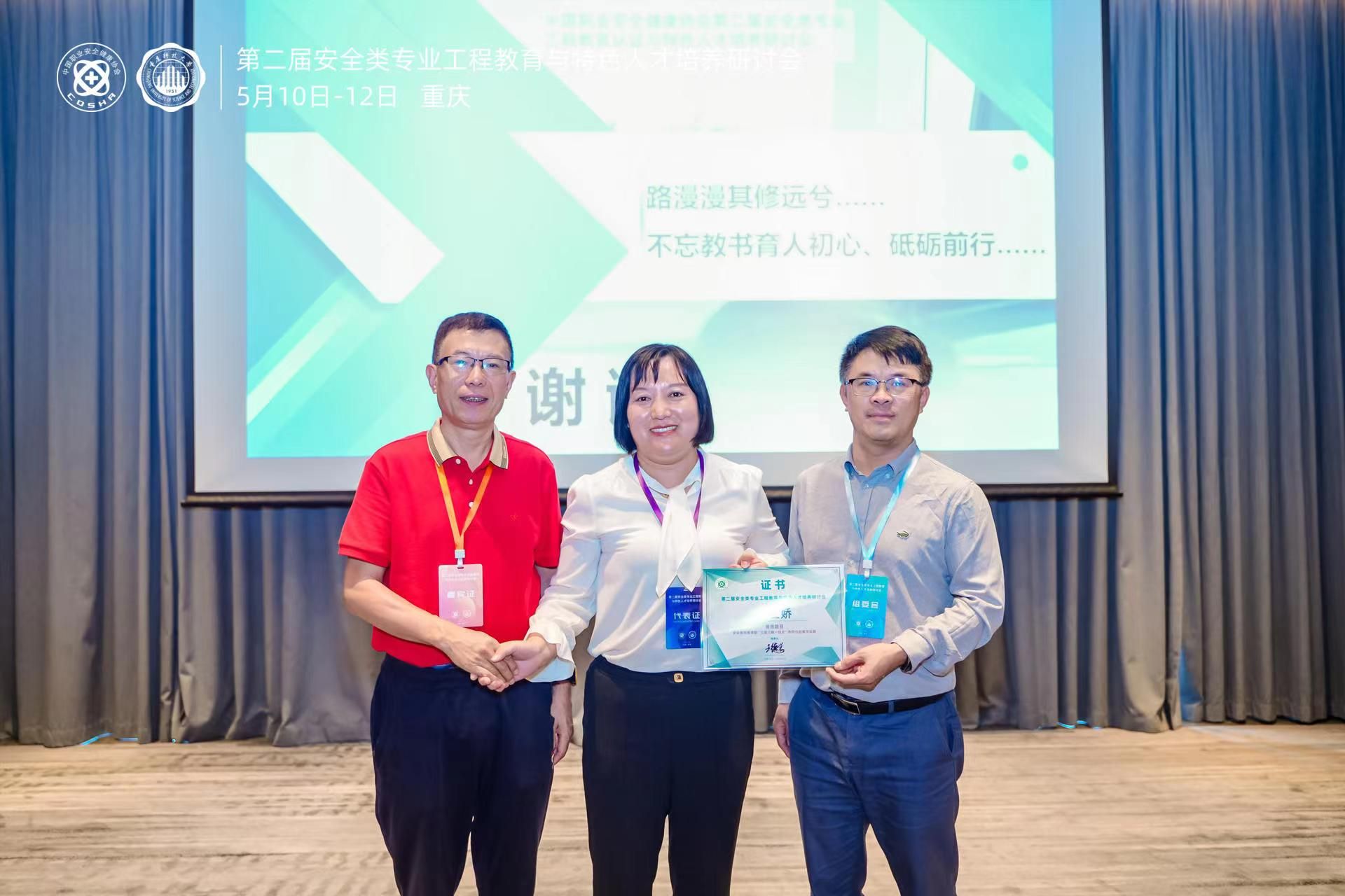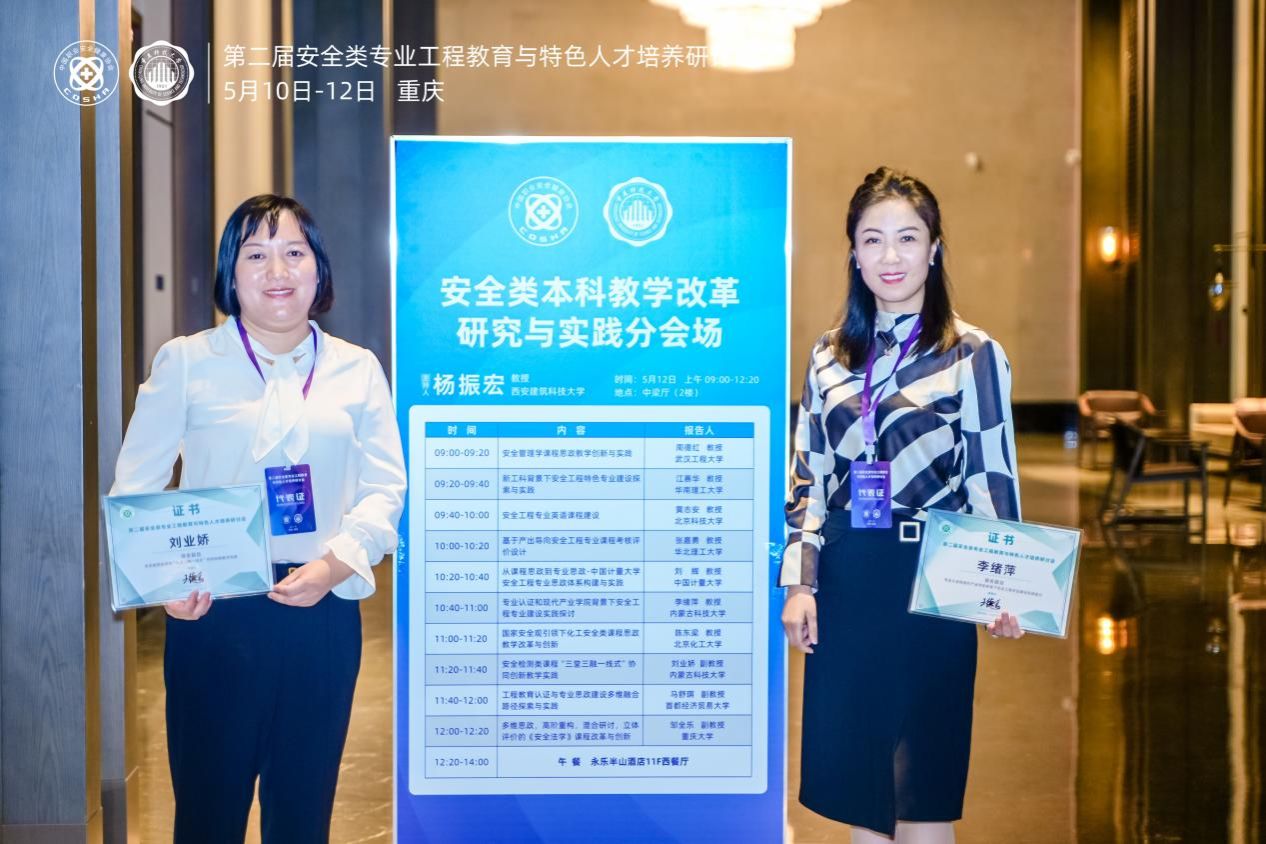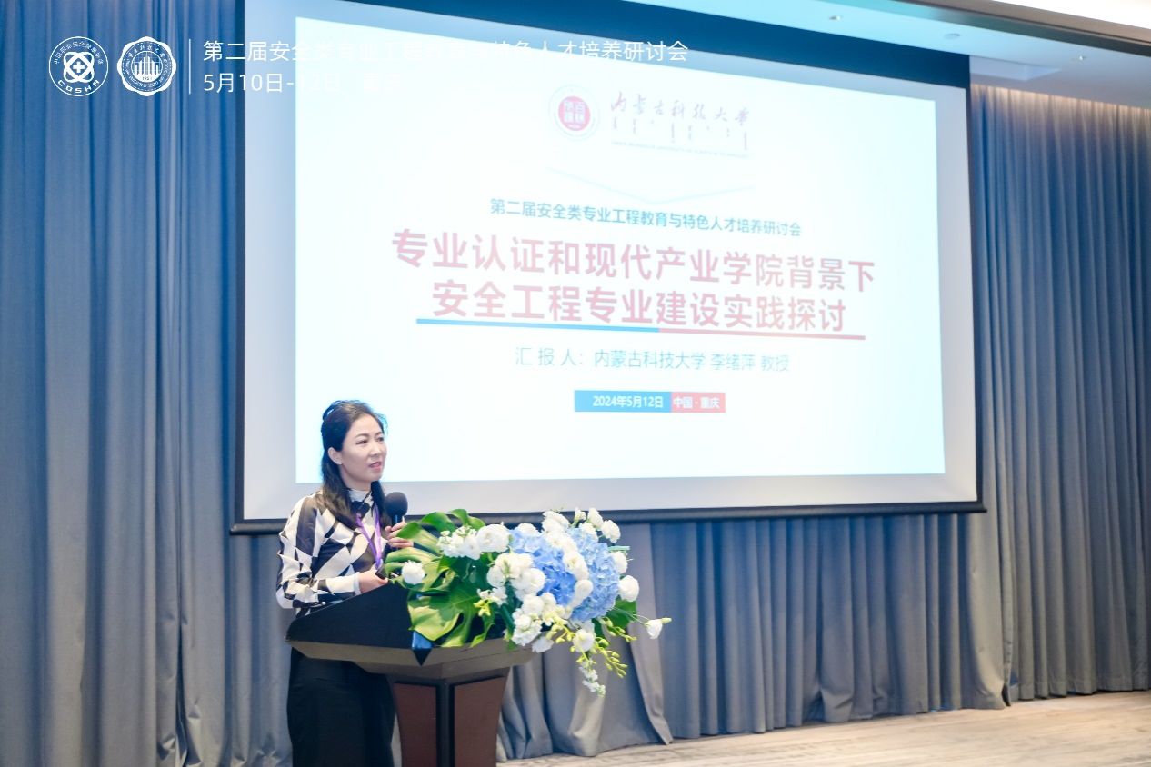 2024年5月10日-12日,第二届安全类专业工程教育与特色人才培养研讨会在重庆召开,pg娱乐电子游戏官网入口教师李绪萍、刘业娇、陈景序、任玉辉、张靖参加了会议,其中李绪萍教授和刘业娇副教授发表了大会报告。