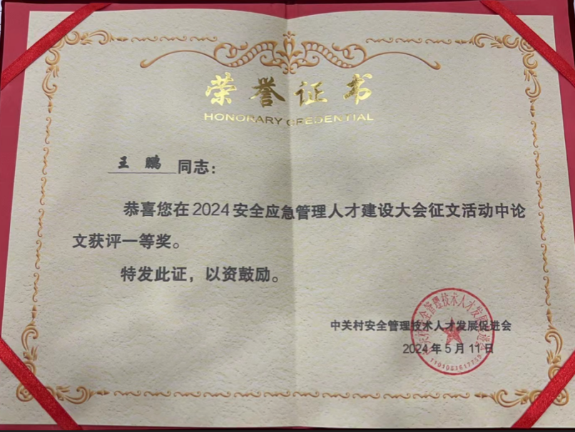 会议期间,pg娱乐教师针对应急管理的科学基础探讨、人工智能在应急管理体系中的应用探究、“大安全、大应急”框架下的智慧应急创新联合体、智慧安全工程人才培养等内容与参会专家学者进行了现场交流和研讨。pg娱乐教师王鹏提交的论文“多因素耦合下煤矸石山自燃危险性综合评估与控制策略研究”获得一等奖、陈景序提交的论文“地区应急人才培养模式与全产业链服务探究”获得二等奖。