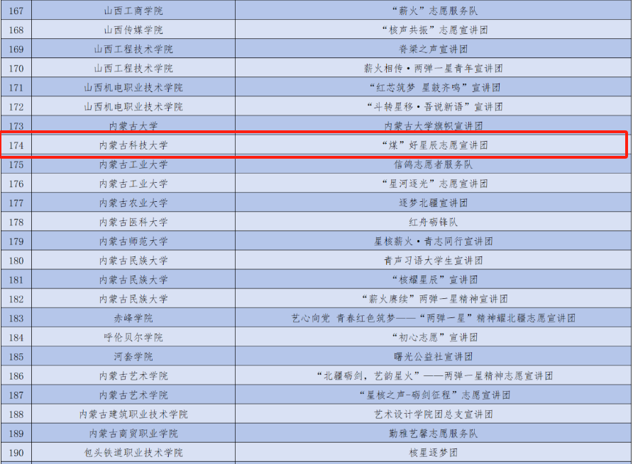 为深入学习宣传贯彻习近平新时代中国特色社会主义思想,全面贯彻党的二十大和二十届二中、三中全会精神,引导新时代广大青年学生坚定爱国报国信念,大力弘扬与传承“两弹一星”精神,激发广大青年投身强核强国事业的热情,团中央青年志愿者行动指导中心与中国核工业集团有限公司联合发布了《关于遴选2025年全国大学生“两弹一星”精神志愿宣讲团的公告》。活动得到了各高校青年志愿服务团队的广泛关注和积极参与,1123所高校的5680支青年志愿服务团队提交了申报材料。主办单位对所有材料进行了认真审阅,最终遴选出1500支“两弹一星”精神志愿宣讲服务团队,同时遴选16所“两弹一星”精神志愿宣讲重点联系高校。我校pg娱乐电子游戏官网入口“煤”好星辰志愿宣讲团成功入选。