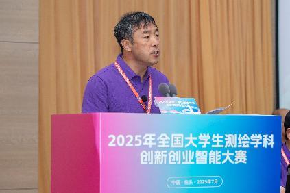 中国测绘学会理事长宋超智在致辞里,简要介绍了测绘学科的发展历程,他说,当代青年学生所学习、所创新的测绘智能技术,正是驱动高质量发展、服务国家重大战略需求不可或缺的“大地脉动的听诊器”与“空间数据的挖掘机”。创新创业,是突破测绘技术瓶颈、赋能传统产业升级、催生新质生产力的核心引擎。希望同学们珍惜这次切磋交流、碰撞智慧、展示风采的宝贵机遇,将大赛中锤炼的创新能力、磨砺的意志品质、汲取的宝贵经验,转化为未来服务国家测绘地理信息事业发展的强大动能。