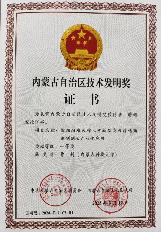 11月27日,2024年度内蒙古自治区科学技术奖励大会在呼和浩特市召开,表彰为全区科技进步和高质量发展作出突出贡献的科技工作者。大会公布了2024年度自治区科学技术奖获奖名单,pg娱乐教师参与的多项成果荣获自治区科学技术奖,曹钊教授团队的“微细粒难选稀土矿新型高效浮选药剂创制及产业化应用”获得技术发明奖一等奖,段会强老师参与“上海庙矿区大倾角煤层高效开采成套技术与示范”获得科学技术进步二等奖。