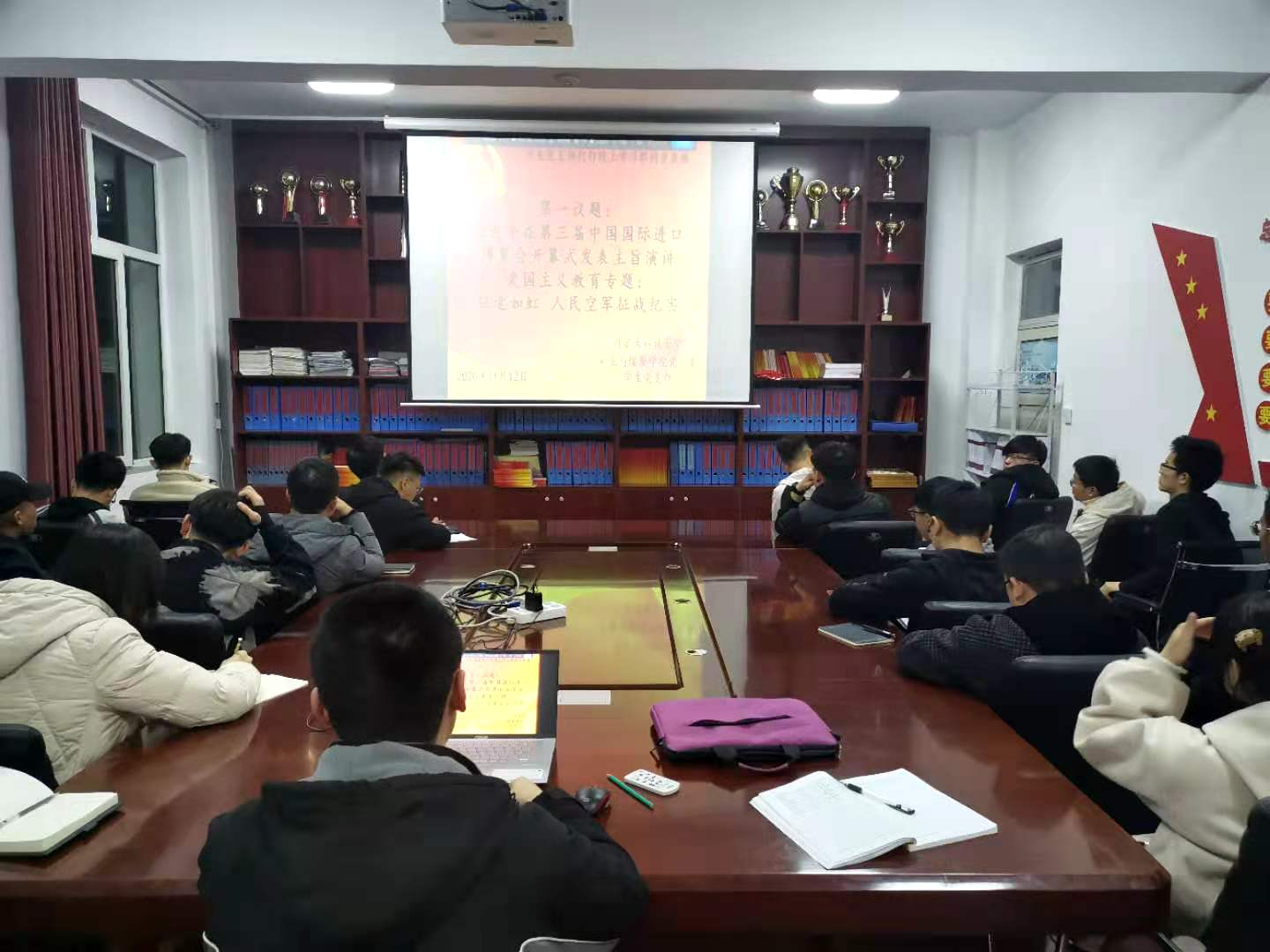 回首人民空军那些刻骨铭心的故事,抒发对人民空军的深厚情义,pg娱乐电子游戏官网入口党总支于2020年1112日晚上19:30,在临曦楼二楼党员之家线上线下同步开展专题理论学习活动。本次学习内容是:第一议题:学习习近平在第三届中国国际进口博览会开幕式上发表主旨演讲讲话精神;爱国主义教育专题:观看《征途如虹人民空军征战纪实》视频。