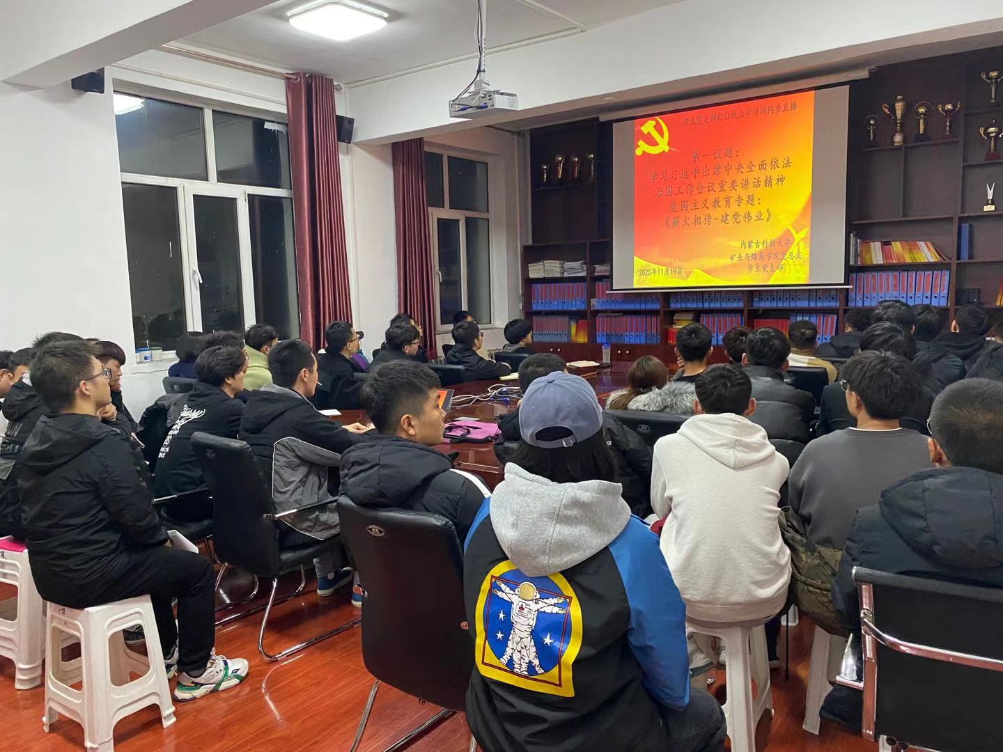 为大力弘扬爱国主义精神,pg娱乐电子游戏官网入口党总支于2020年1119日晚上19:30,在临曦楼二楼党员之家线上线下同步开展专题理论学习活动。本次学习内容是:第一议题:学习习近平出席中央全面依法治国工作会议重要讲话精神;爱国主义教育专题:观看《薪火相传-建党伟业》视频。