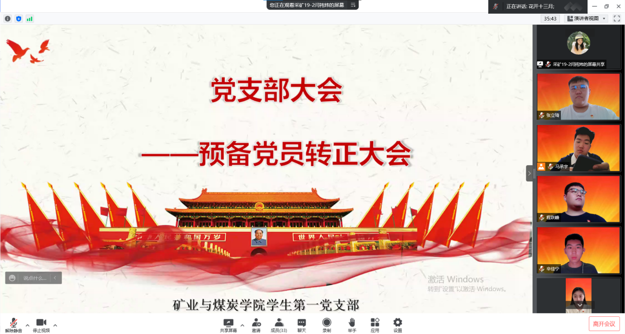 2022年5月27日中午12:30,pg娱乐电子游戏官网入口学生第一党支部召开预备党员转正大会。pg娱乐电子游戏官网入口学生第一党支部全体党员参加会议,学生第一党支部书记郭灵同志主持本次会议。