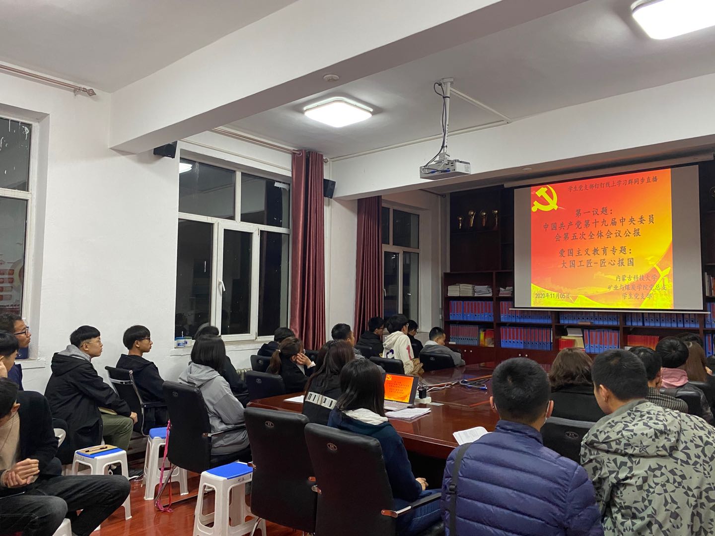 为大力弘扬和培育工匠精神,认真学习“大国工匠”坚韧不拔的意志品格和追求卓越的职业精神,pg娱乐电子游戏官网入口党总支于2020年11月05日晚上19:30,在临曦楼二楼党员之家线上线下同步开展专题理论学习活动。本次学习内容是:第一议题:学习中国共产党第十九届中央委员会第五次全体会议公报;爱国主义教育专题:观看《大国工匠-匠心报国》视频。