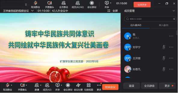 2022年5月27日晚18:00,pg娱乐电子游戏官网入口学生第三党支部于钉钉平台召开党员党课学习,本次学习的主题是:铸牢中华民族共同体意识,共同绘就中华民族伟大复兴壮美画卷。领学人:闫妍同志。