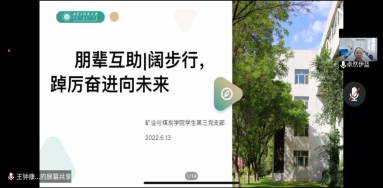 2022年6月,pg娱乐电子游戏官网入口学生第三党支部于腾讯会议平台召开“朋辈互助|阔步行,踔力奋进未来”主题党日活动。