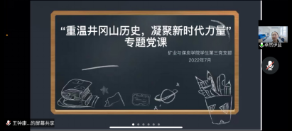 2022年7月3日下午3:00,pg娱乐电子游戏官网入口学生第三党支部于腾讯会议平台召开党员党课学习,本次学习的主题是:重温井冈山历史,凝聚新时代力量。领学人:闫妍同志。