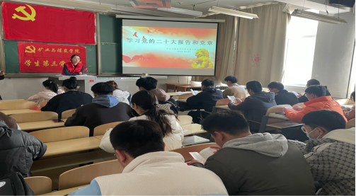 2023年3月2日上午10:30,pg娱乐电子游戏官网入口学生第三党支部在临曦楼209教室组织党员集中学习党的二十大报告和党章,为开好2022年度组织生活会打牢思想基础。领学人:闫妍同志。